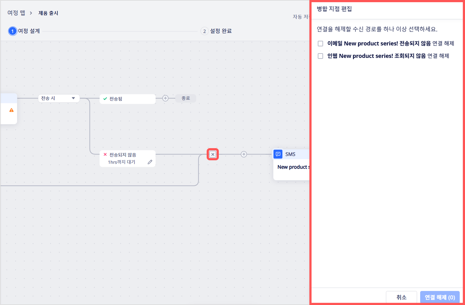 여정의 흐름을 변경해야 하거나 사용자들을 다시 분리해야 하는 경우, 병합된 연결을 해제할 수 있습니다.