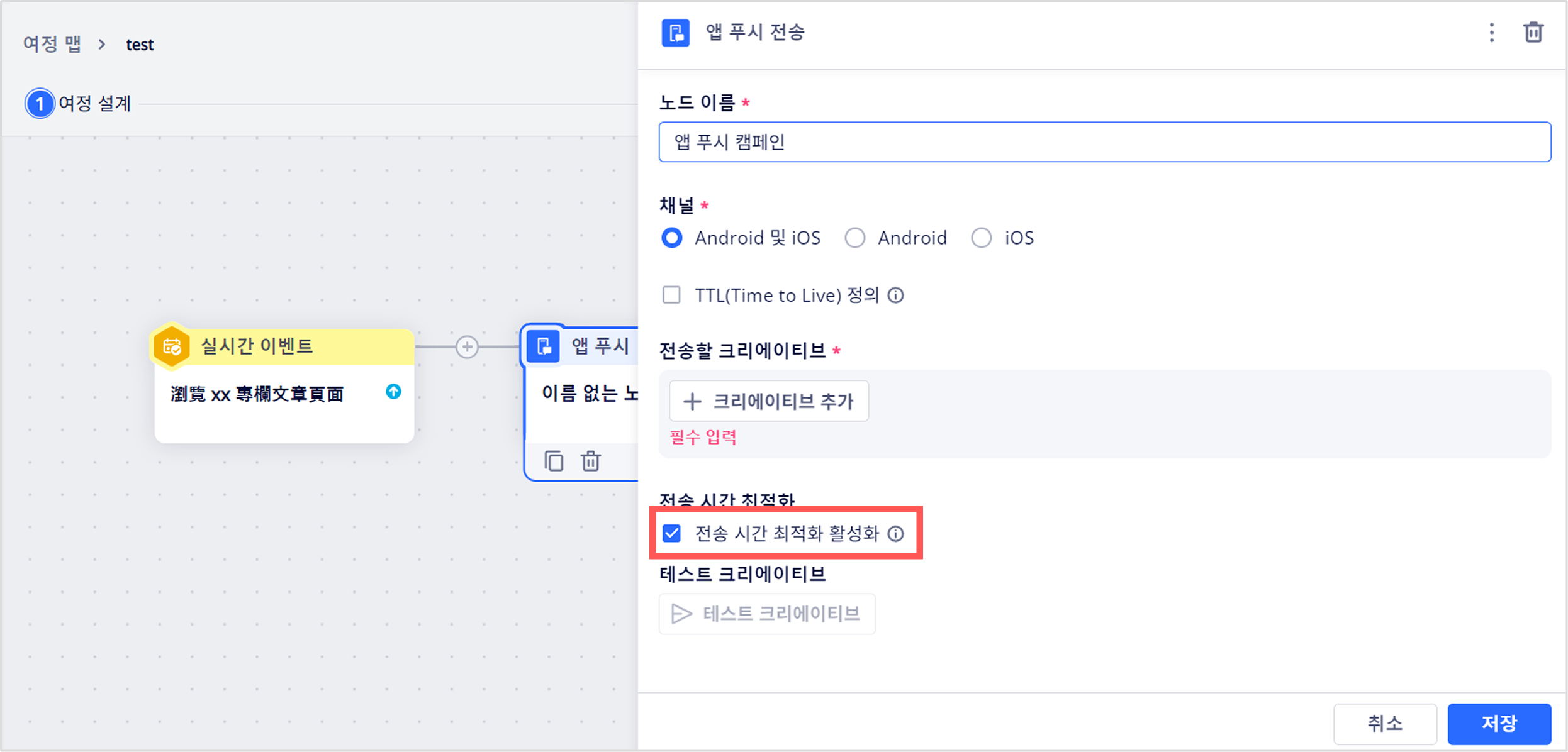 전송 시간 최적화(웹 및 앱 푸시)
