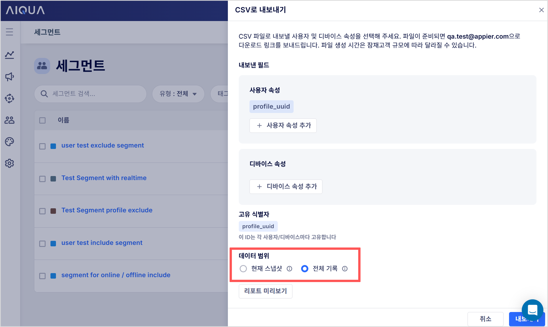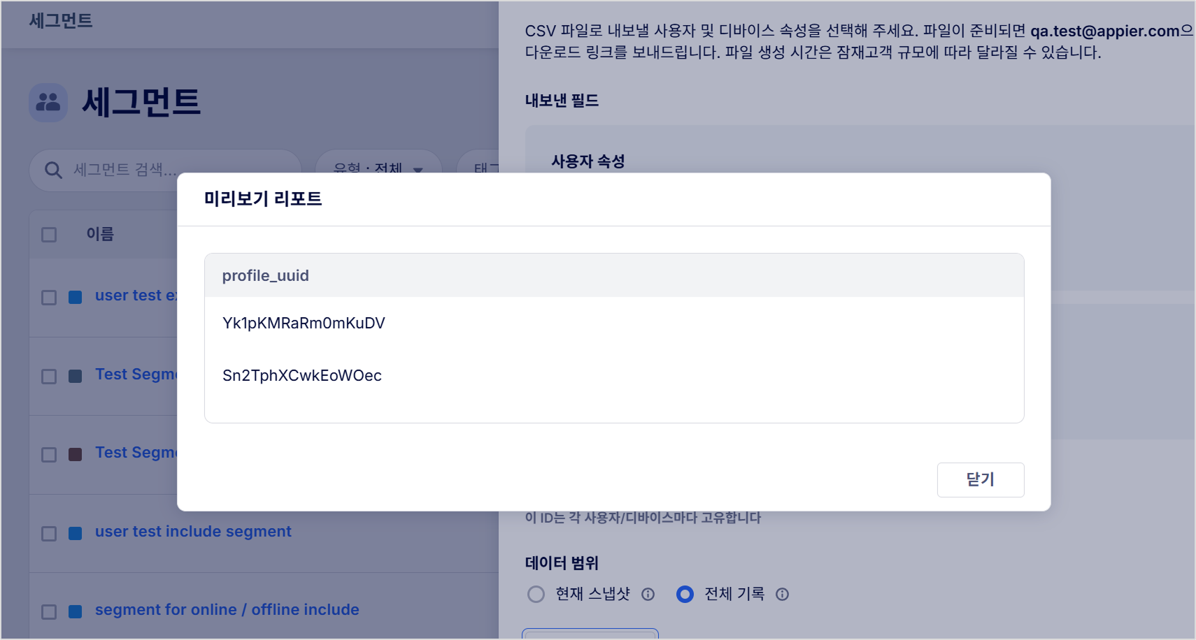 - [CSV로 세그먼트 내보내기](#csv-로 세그먼트 내보내기)